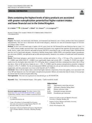 Diets containing the highest levels of dairy products are associated with greater eutrophication potential but higher nutrient intakes