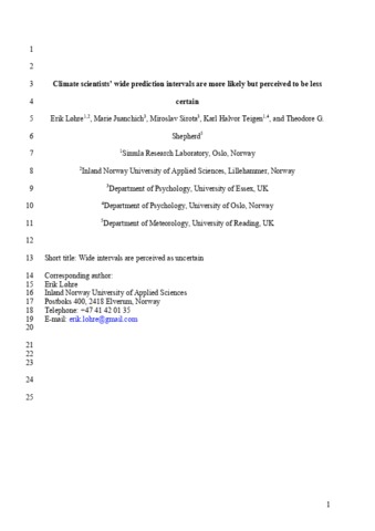 Løhre, E., Juanchich, M., Sirota, M., Teigen, K. H. and Shepherd, T. G. orcid id iconORCID: https://orcid.org/0000-0002-6631-9968 (2019) Climate scientists’ wide prediction intervals may be more likely but are perceived to be less certain. Weather, Climate and Society, 11 (3). pp. 565-575. ISSN 1948-8327 doi: 10.1175/WCAS-D-18-0136.1
