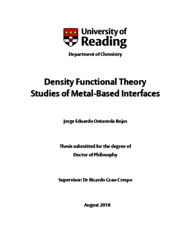 Ontaneda Rojas, J. E. (2018) Density functional theory studies of metal-based interfaces. PhD thesis, University of Reading.