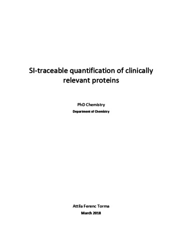 Torma, A. F. (2018) SI-traceable quantification of clinically relevant proteins. PhD thesis, University of Reading.