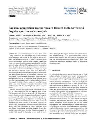 Rapid ice aggregation process revealed through triple-wavelength Doppler spectra radar analysis.