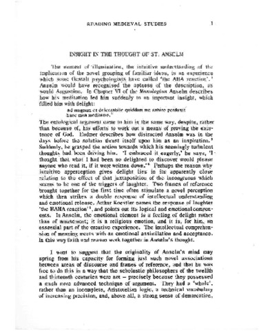 Evans, G. (1975) Insight into the thought of St. Anselm. Reading Medieval Studies, I. pp. 1-15. ISSN 0950-3129