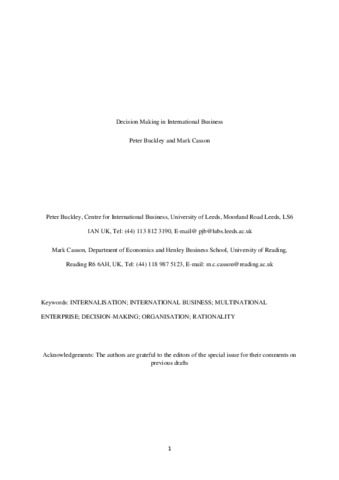 Buckley, P. and Casson, M. orcid id iconORCID: https://orcid.org/0000-0003-2907-6538 (2019) Decision-making in international business. Journal of International Business Studies, 50 (8). pp. 1424-1439. ISSN 1478-6990 doi: 10.1057/s41267-019-00244-6