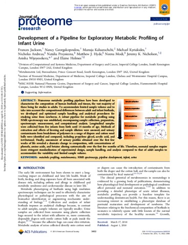 Development of a pipeline for exploratory metabolic profiling of infant urine.