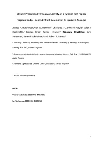 Melanin production by tyrosinase activity on a tyrosine-rich peptide fragment and pH-dependent self-assembly of its lipidated analogue.