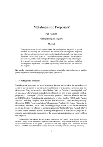 Metalinguistic proposals.