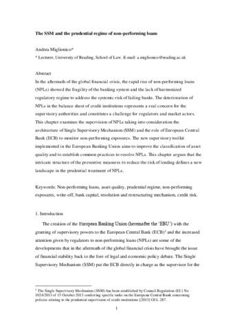In the aftermath of the global financial crisis, the rapid rise of non-performing loans (NPLs) showed the fragility of the banking system and the lack of harmonized regulatory regime to address the systemic risk of failing banks. The deterioration of NPLs in the balance sheet of credit institutions represents a real concern for the supervisory authorities and constitutes a challenge for regulators and market actors. This chapter examines the supervision of NPLs taking into consideration the architecture of Single Supervisory Mechanism (SSM) and the role of European Central Bank (ECB) to monitor non-performing exposures. The new supervisory toolkit implemented in the European Banking Union aims to improve the classification of asset quality and to establish common practices to resolve NPLs. This chapter argues that the intricate structure of the preventive measures to reduce the risk of lending defines a new landscape in the prudential treatment of NPLs.
