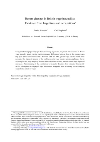 • Belfield, C., R. Blundell, J. Cribb, A. Hood, and R. Joyce. 2017. “Two Decades of Income Inequality in Britain: The Role of Wages, Household Earnings and Redistribution.” Economica, 84(334): 157–179.