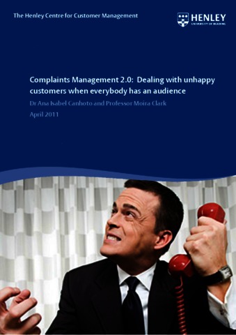 Canhoto, A. I. and Clark, M., (2011) Complaints management 2.0: dealing with unhappy customers when everybody has an audience. Report. Henley Centre for Customer Management