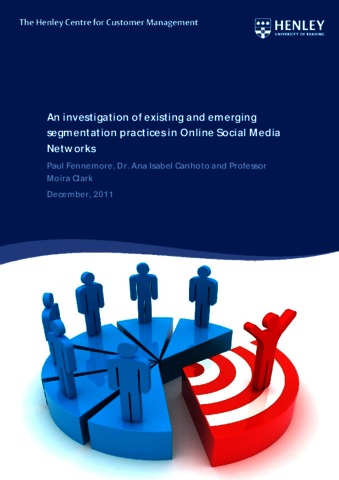 Fennemore, P., Canhoto, A. I. and Clark, M., (2011) An investigation of existing and emerging segmentation practices in online social media networks. Report. Henley Centre for Customer Management