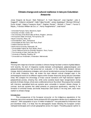 Climate change and cultural resilience in late pre-Columbian Amazonia