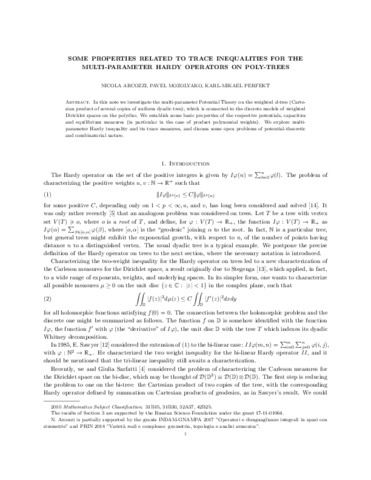 Arcozzi, N., Mozolyako, P. and Perfekt, K.-M. (2019) Some properties related to trace inequalities for the multi-parameter Hardy operators on poly-trees. Analysis and Mathematical Physics, 9 (3). pp. 937-954. ISSN 1664-235X doi: 10.1007/s13324-019-00327-5