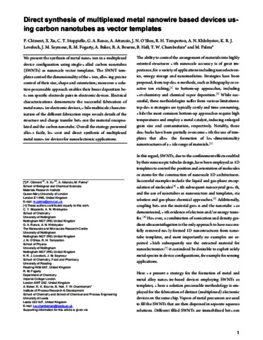 Direct synthesis of multiplexed metal nanowire based devices using carbon nanotubes as vector templates.