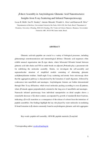 β ‐ sheet assembly in amyloidogenic glutamic acid nanostructures: insights from X‐ray scattering and infrared nanospectroscopy.
