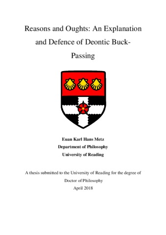 Metz, E. H. (2018) Reasons and oughts: an explanation and defence of deontic buck-passing. PhD thesis, University of Reading.