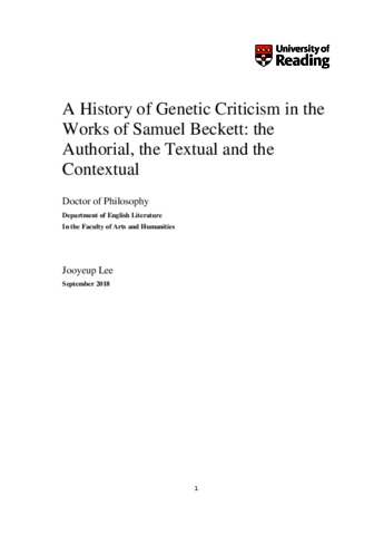 Lee, J. (2018) A history of genetic criticism in the works of Samuel Beckett: the authorial, the textual and the contextual. PhD thesis, University of Reading.