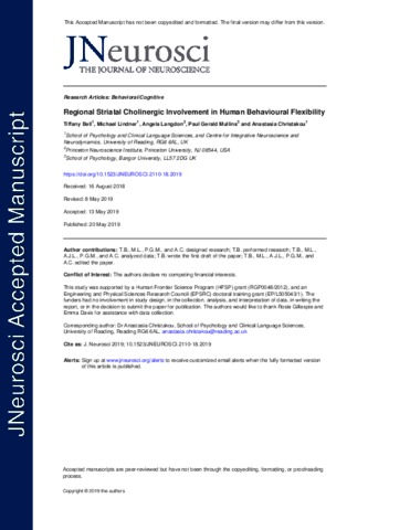 Regional striatal cholinergic involvement in human behavioural flexibility.