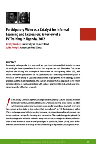Participatory video as a catalyst for informal learning and expression: a review of a PV training in Uganda, 2012.