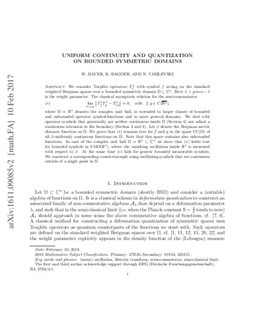 Bauer, W., Hagger, R. and Vasilevski, N. (2017) Uniform continuity and quantization on bounded symmetric domains. Journal of the London Mathematical Society, 96 (2). pp. 345-366. ISSN 1469-7750 doi: 10.1112/jlms.12069