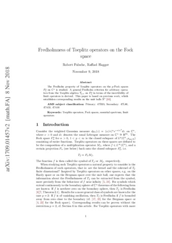 Fulsche, R. and Hagger, R. (2019) Fredholmness of Toeplitz operators on the Fock space. Complex Analysis and Operator Theory, 13 (2). pp. 375-403. ISSN 1661-8262 doi: 10.1007/s11785-018-0803-8