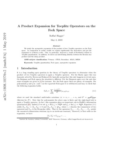 Hagger, R. (2019) A product expansion for Toeplitz operators on the Fock space. Proceedings of the American Mathematical Society, 147 (11). pp. 4823-4833. ISSN 0002-9939 doi: 10.1090/proc/14661