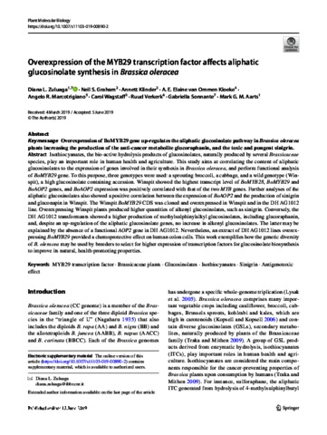 Overexpression of the MYB29 transcription factor affects aliphatic glucosinolate synthesis in Brassica oleracea