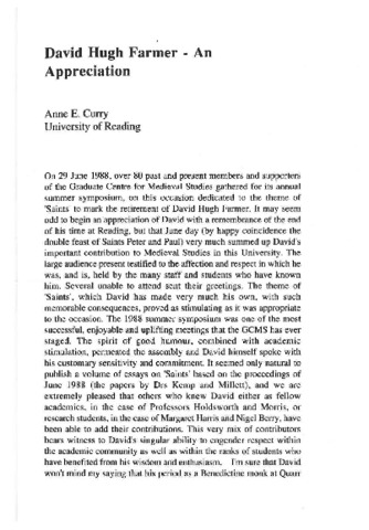 Curry, A. E. (1990) David Hugh Farmer - an appreciation and David Hugh Farmer - a bibliography of published works. Reading Medieval Studies, XVI. pp. 5-14. ISSN 0950-3129