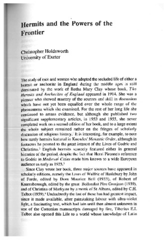 Holdsworth, C. (1990) Hermits and the powers of the frontier. Reading Medieval Studies, XVI. pp. 55-76. ISSN 0950-3129