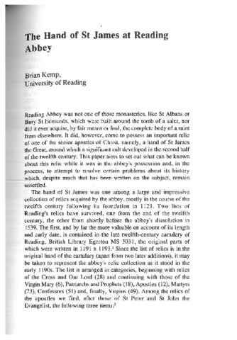 Kemp, B. (1990) The hand of St James at Reading Abbey. Reading Medieval Studies, XVI. pp. 77-98. ISSN 0950-3129