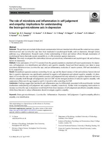 The role of microbiota and inflammation in self-judgement and empathy: implications for understanding the brain-gut-microbiome axis in depression.