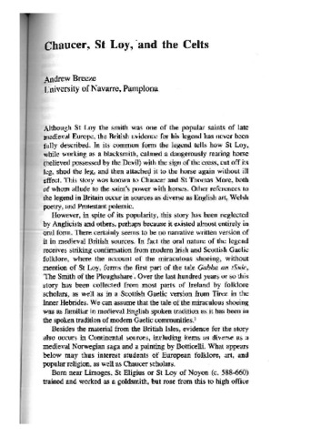 Breeze, A. (1991) Chaucer, St Loy, and the Celts. Reading Medieval Studies, XVII. pp. 103-125. ISSN 0950-3129