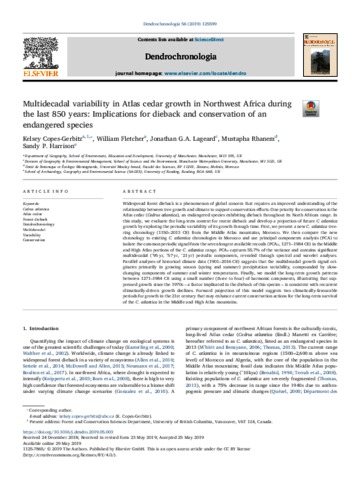 Multidecadal variability in Atlas cedar growth in northwest Africa during the last 850 years: implications for dieback and conservation of an endangered species.
