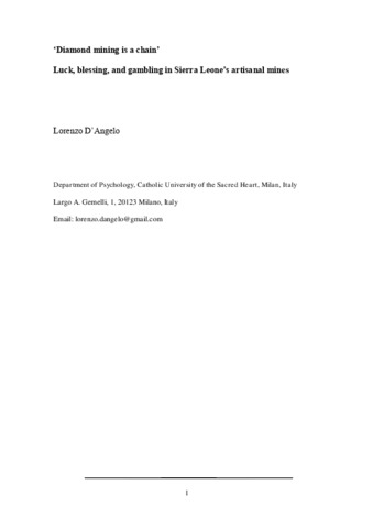 D'Angelo, L. (2015) 'Diamond mining is a chain'. Luck, blessing, and gambling in Sierra Leone’s artisanal mines. Critical African Studies, 7 (3). pp. 243-261. ISSN 2040-7211 doi: 10.1080/21681392.2015.1077467