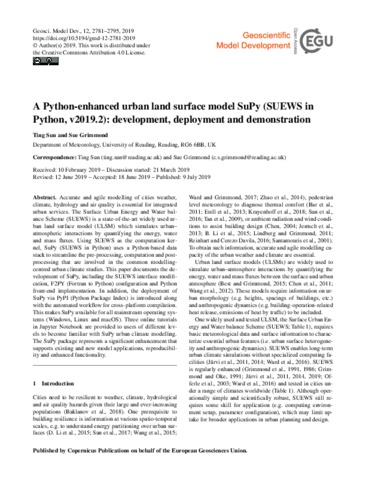 A Python-enhanced urban land surface model SuPy (SUEWS in Python, v2019.2): development, deployment and demonstration.