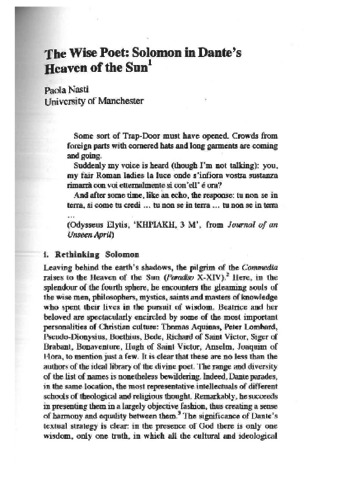 Nasti, P. (2001) The wise poet: Solomon in Dante's Heaven of the Sun. Reading Medieval Studies, XXVII. pp. 103-138. ISSN 0950-3129