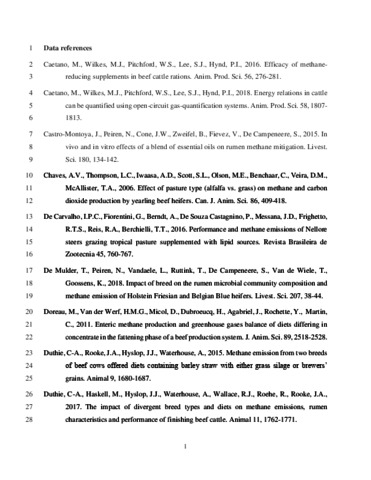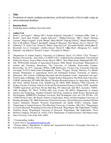 Prediction of enteric methane production, yield and intensity of beef cattle using an intercontinental database.