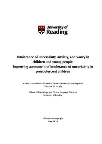 Osmanagaoglu, N. (2018) Intolerance of uncertainty, anxiety, and worry in children and young people: improving assessment of intolerance of uncertainty in preadolescent children. PhD thesis, University of Reading.