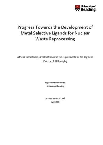 Westwood, J. (2018) Progress towards the development of metal selective ligands for nuclear waste reprocessing. PhD thesis, University of Reading.