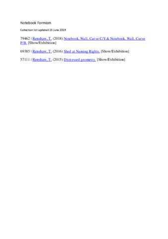 | Additional Information | A listing of shows and exhibitions in the Notebook Formism collection |