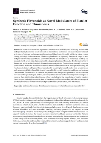 Synthetic flavonoids as novel modulators of platelet function and thrombosis.