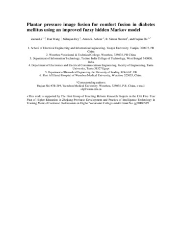 Plantar pressure image fusion for comfort fusion in diabetes mellitus using an improved fuzzy hidden Markov model.