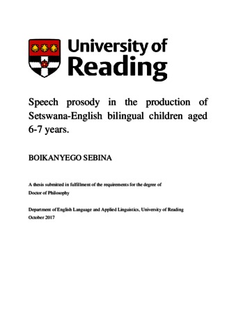 Sebina, B. (2018) Speech prosody in the production of Setswana-English bilingual children aged 6-7 years. PhD thesis, University of Reading.