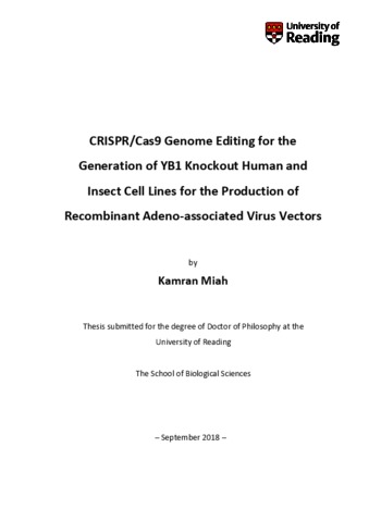 Miah, K. (2019) CRISPR/Cas9 genome editing for the generation of YB1 knockout human and insect cell lines for the production of recombinant Adeno-associated virus vectors. PhD thesis, University of Reading. doi: 10.48683/1926.00084815
