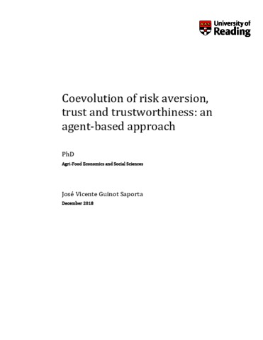 Guinot Saporta, J. V. G. (2019) Coevolution of risk aversion, trust and trustworthiness: an agent-based approach. PhD thesis, University of Reading. doi: 10.48683/1926.00084839