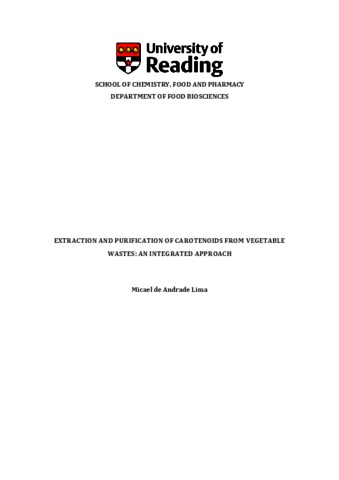 de Andrade Lima, M. (2018) Extraction and purification of carotenoids from vegetable wastes: an integrated approach. PhD thesis, University of Reading.