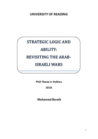 Boraik, M. (2019) Strategic logic and ability: revisiting the Arab-Israeli wars. PhD thesis, University of Reading. doi: 10.48683/1926.00084844