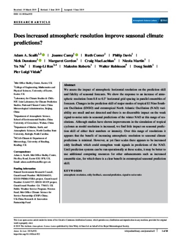 Scaife, A. A., Camp, J., Comer, R., Davis, P., Dunstone, N., Gordon, M., MacLachlan, C., Martin, N., Nie, Y., Ren, H.-L., Roberts, M., Robinson, W., Smith, D. and Vidale, P. L. ORCID: https://orcid.org/0000-0002-1800-8460