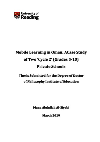 Al-Siyabi, M. (2019) Mobile learning in Oman: a case study of two 'cycle 2' (grades 5-10) private schools. PhD thesis, University of Reading. doi: 10.48683/1926.00084912