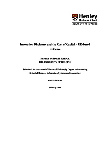 Matthews, L. (2019) Innovation disclosure and the cost of capital – UK-based evidence. PhD thesis, University of Reading.
