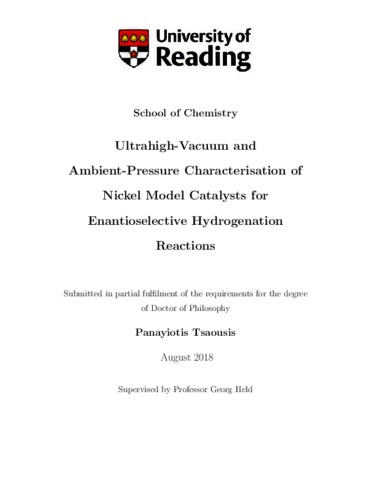Tsaousis, P. (2019) Ultrahigh-vacuum and ambient-pressure characterisation of nickel model catalysts for enantioselective hydrogenation reactions. PhD thesis, University of Reading. doi: 10.48683/1926.00084937